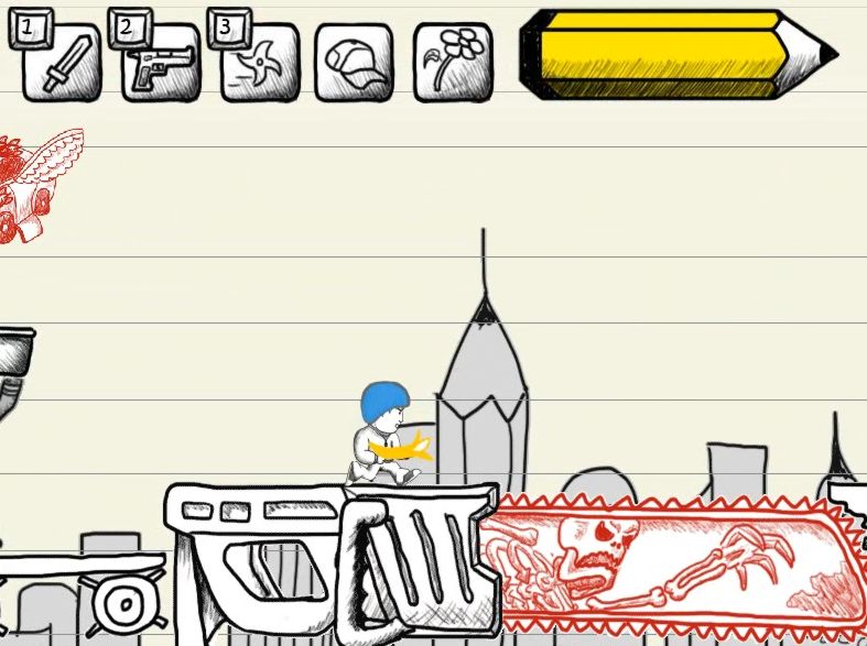 Заметь, что нарисованные тобой объекты можно менять по ходу игры, а оружие менять, окрашивая его в зелёный или желтый цвета. Зеленым мечом, например, можно сражаться с врагами в близком бою, а жёлтый цвет в этой игре превращает оружие во взрывчатку.