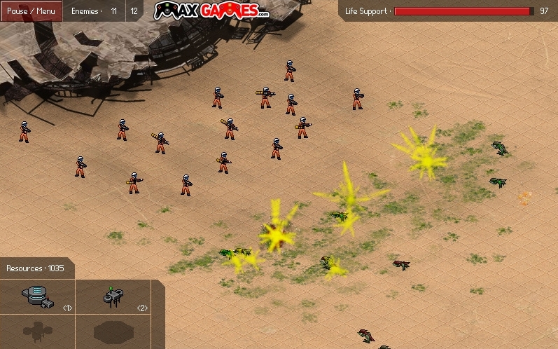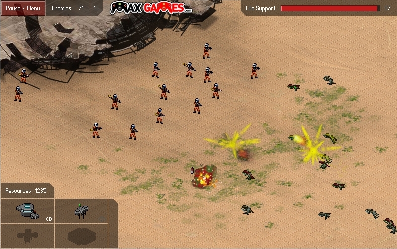 Красивая и очень интересная игра от Max Games - музыкальный бэкграунд, графика - все в этой игре создает особую атмосферу, которая просто не может не понравиться. Нам предстоит отражать атаки враждебных инопланетных монстров, нужно продумать тактику защиты и построить из доступных ресурсов оборону таким образом, чтобы враг не прошел сквозь нашу линию обороны и никто из защитников не пострадал. Наши юниты должны не просто стрелять в нападающих, но и прикрывать друг друга - от расположения сил здесь многое зависит. У каждого юнита свой участок ответственности и особое оружие, которое становится доступно по мере прохождения игры. Чем результативнее отражена атака, тем больше очков вы получаете, соответственно больше нового оружия можете задействовать. На нашем сайте gamesforboys.ru есть похожая игра, которая называется